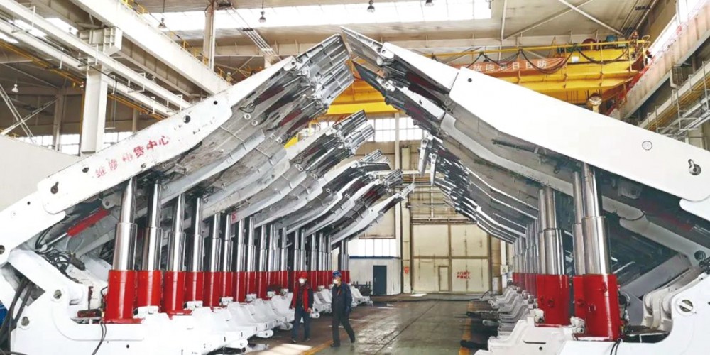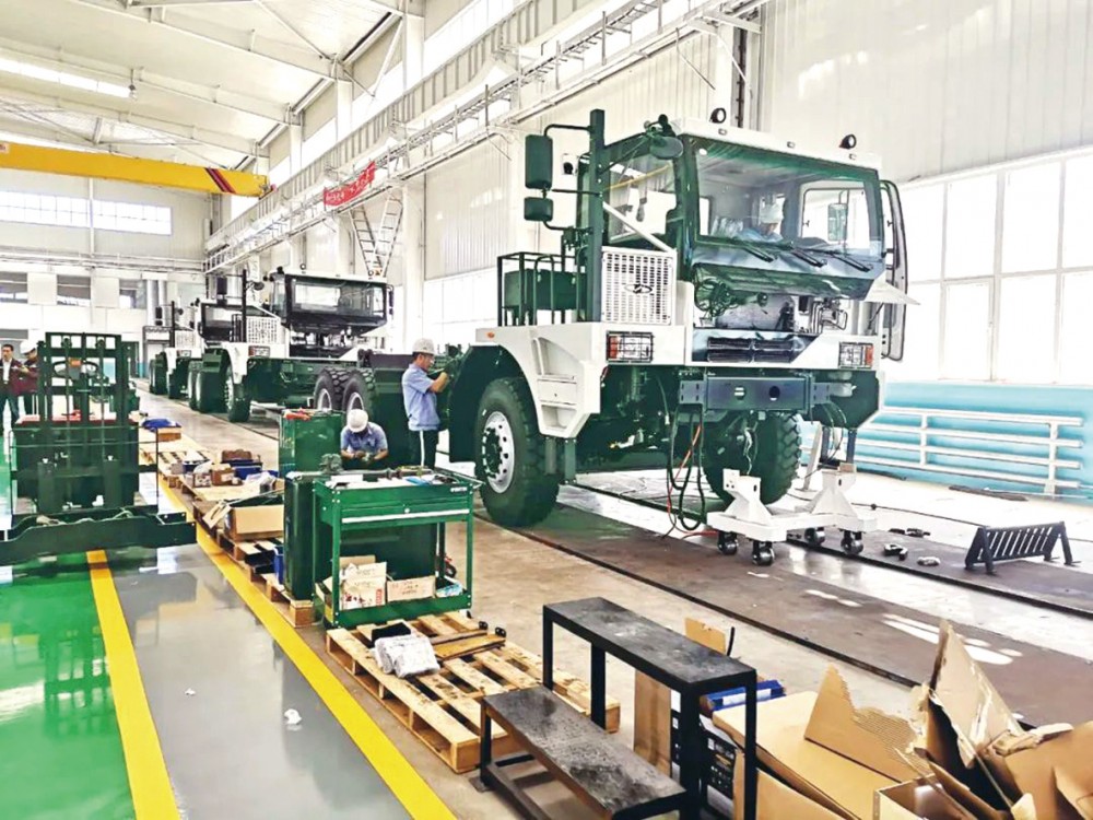 诺浩机电公司矿用新能源宽体车生产车间工人在紧张工作中