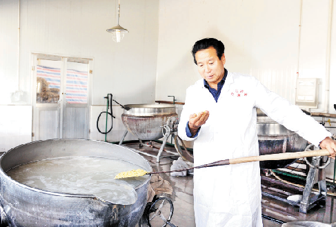 李全锁正在浸米淘洗