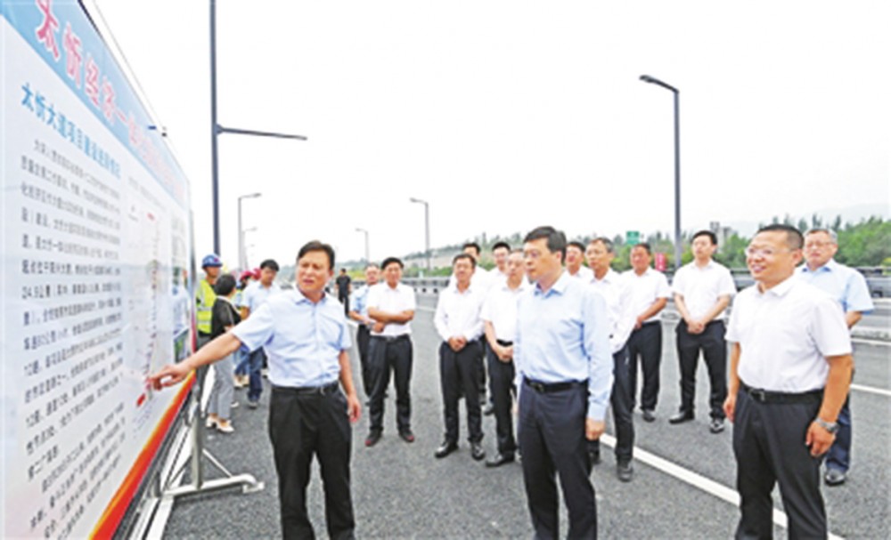 省委常委、太原市委书记韦韬在太忻大道调研项目建设情况。 梁琛摄