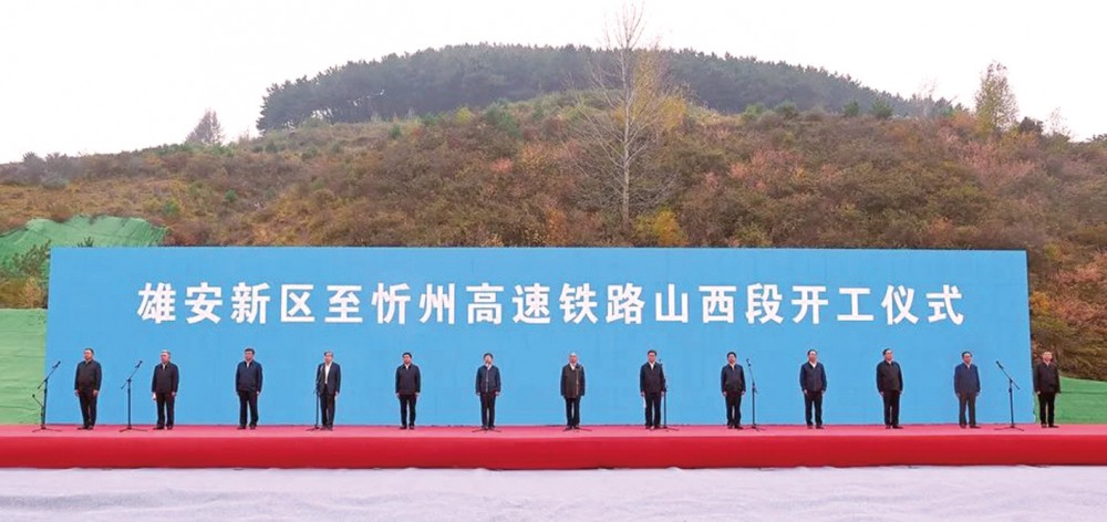 上午10时许,林武宣布:“雄安新区至忻州高速铁路山西段开工!”现场工程机械轰鸣,项目在火热的氛围中正式启动建设。