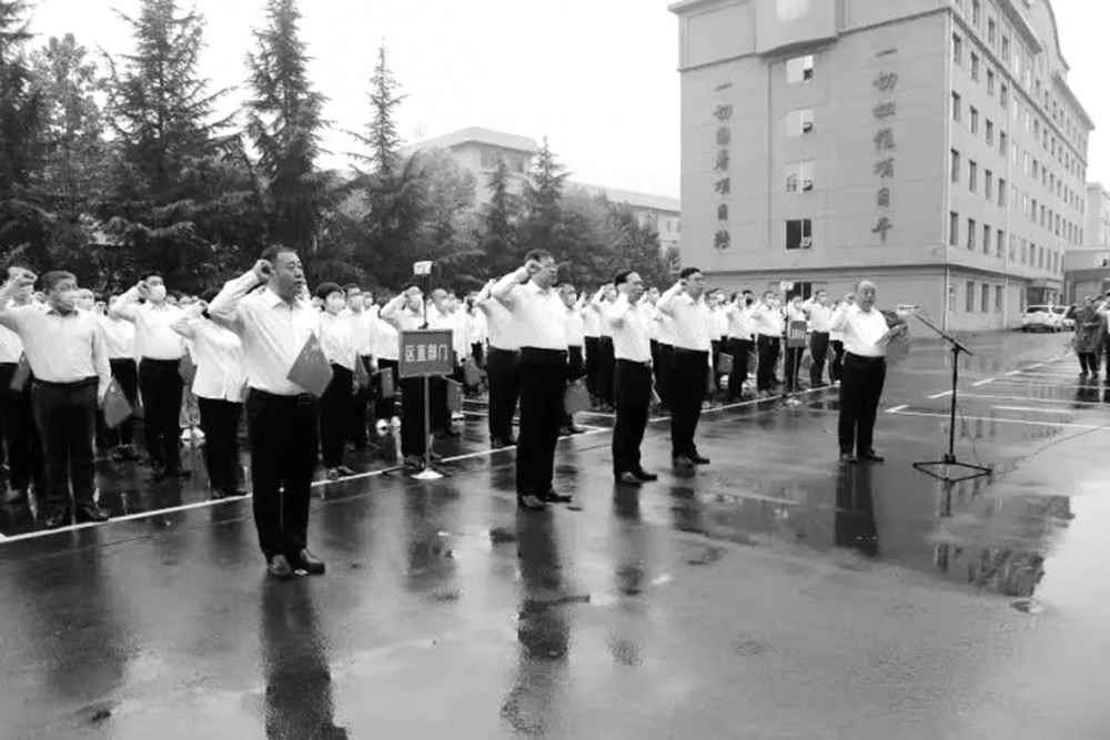 晋城开发区班子成员史小林、赵永红、董海顺、陈仲会、郭瑞林,区直各部门、区直属企业,驻区各单位干部职工,共300多人参加升旗仪式。