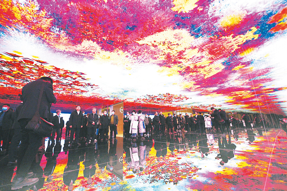 12月5日,山西文旅数字体验馆内,市民正在沉浸式体验参观。该体验馆以“华夏古文明,山西好风光”为主题,让游客通过VR、AR、体感交互等超现实体验走进华夏五千年文明,身临其境感受历史的韵味。