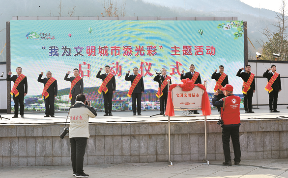 以“我为文明城市添光彩”主题活动为载体,党政齐抓、全县动员、全民参与,用实际行动塑造文明城市良好形象。