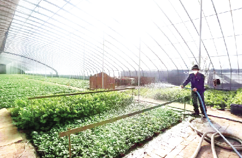 五府营村村民正在为大棚内鲜翠欲滴的草莓苗“补水”