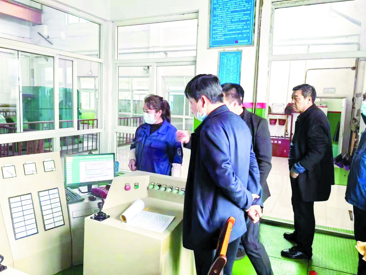 矿领导在绞车房认真检查绞车运营情况