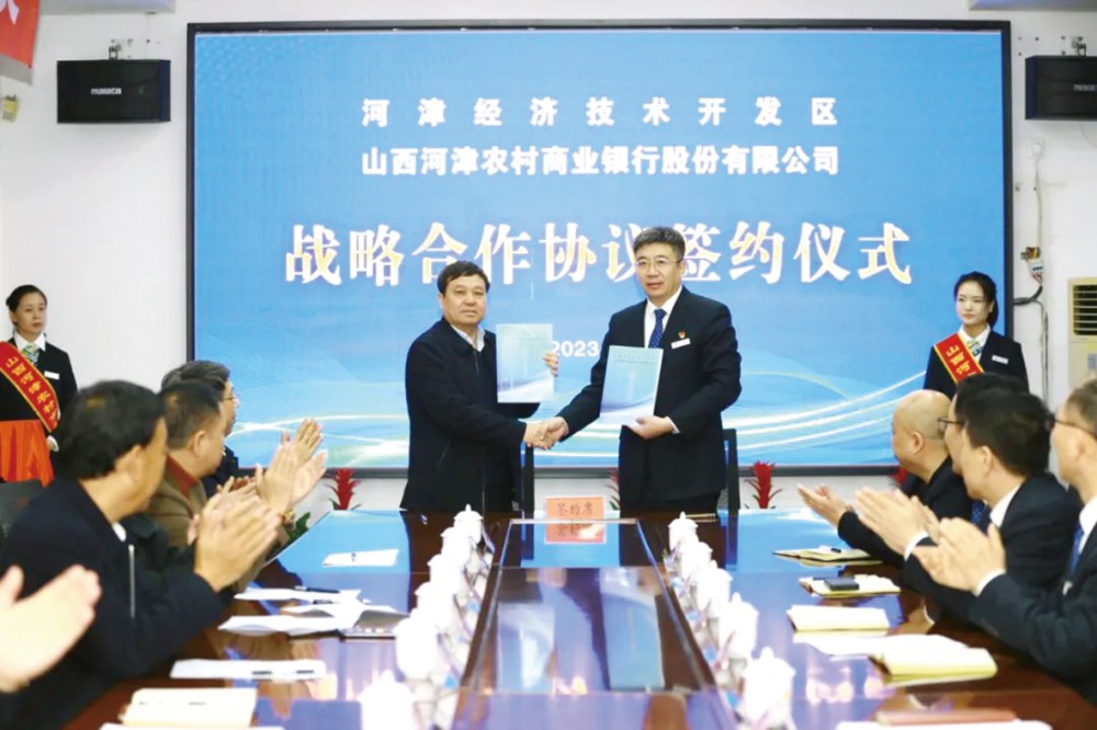 本刊讯 2月9日上午,河津经济技术开发区与山西河津农村商业银行股份有限公司举行战略合作协议签约仪式,开启了“政银企”融合发展的新局面。运城市人大常委会副主任、河津经开区负责人李民富,副市长王高红出席签约仪式。
