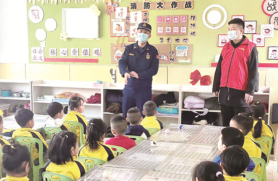 3月6日上午,阳泉市城区消防救援大队在上站幼儿园讲解消防产品相关知识。