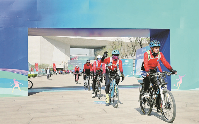 4月16日在长风商务区举行2023太原市(省城)第九届全民健身节启动仪式后,骑行爱好者集体出发