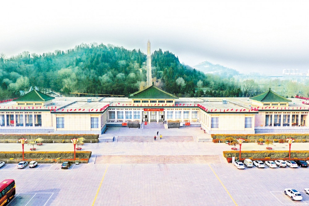 纪念馆后的凤凰山巅,“八路军抗战纪念碑”巍然屹立。