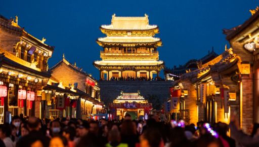 在南门小广场看《古城达人秀》、在隆恩寺古戏台看真功夫街头擂台赛《龙城飞将》、在魁星楼看《龙城书生》国潮音乐剧……从市楼沿着南街走,不经意间就能看到十二生肖巡游;十字街上,随处可见身着古代服饰的游商小贩,或挑着扁担,或推着小车,操着一口地道的晋源方言争相吆喝叫卖,让人瞬间穿越。而夜幕降临后的古县城,歌声起、花灯闪,北城墙上演的主题灯光秀,将传统文化与现代艺术相融合,展现玉宇楼台、夜不罢市的繁荣景象。