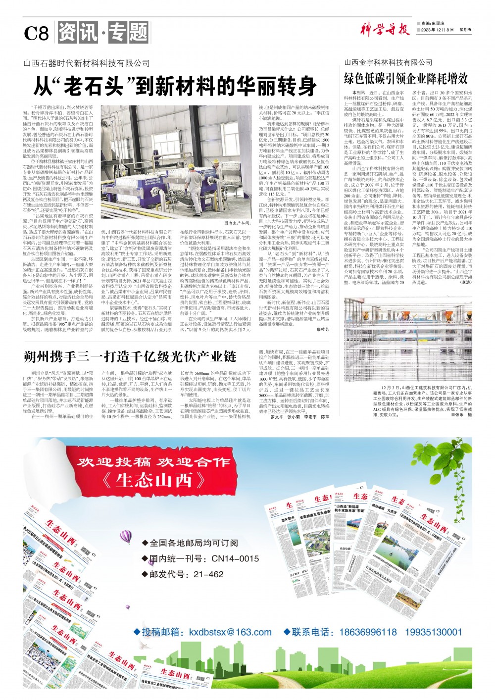 《生态山西》周刊2023年12月8日版面速览