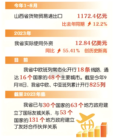 牢记殷殷嘱托,奏响开放强音。当前,全省上下牢记习近平总书记殷殷嘱托,坚定不移推进更高水平对外开放,着力优化开放布局、推进制度型开放、促进对外贸易扩量提质、提升开放平台能级、建设开放通道、提升投资贸易便利化、加强开放创新能力合作,加快构建起多元发展、多点支撑的全面开放新格局,作为内陆省份,山西对外开放的力度越来越大。