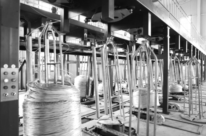 一边是囤积起来的乌黑铁丝,一边是新鲜出炉的银色镀锌铁丝,在这里,原本平平无奇的铁丝开始了它黑白分明的飞跃,这便是山西新宏瑞新材料科技有限公司试生产之后的第一批成品。