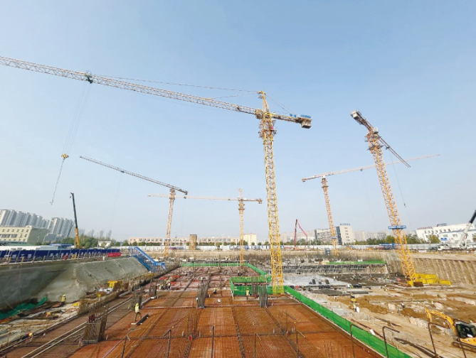 项目负责人介绍,目前项目建设正处于地基与基础施工阶段,施工点多面广,项目部采取‘短兵作战’的方式,推动形成阶段流水作业,高效高标准推进工程进度。该项目基坑深达9.4米,侧壁主要为灵敏性土体、含水量大,开挖土方量约22万立方米,施工难度较大,同时场地狭小、雨季汛期等因素又增加了现场组织协调压力。建设过程中,项目部不断加大资源投入力度,提升现场管理质效,同时通过BIM模型应用进行模拟施工,有效提升施工效率和质量。