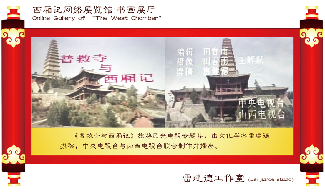 1990年2月,旅游电视专题片《西厢记与普救寺》在中央电视台神州风采栏目和山西电视台五彩缤纷栏目分别播映。印度国际大学中国学院教授,巴黎大学北京汉学研究所通检组主任,中国科学院语言研究所研究员、文学研究所研究员,著名的西厢专家吴晓铃予以题词:“西厢记与普救寺,愿普天下有情的都成了眷属”。