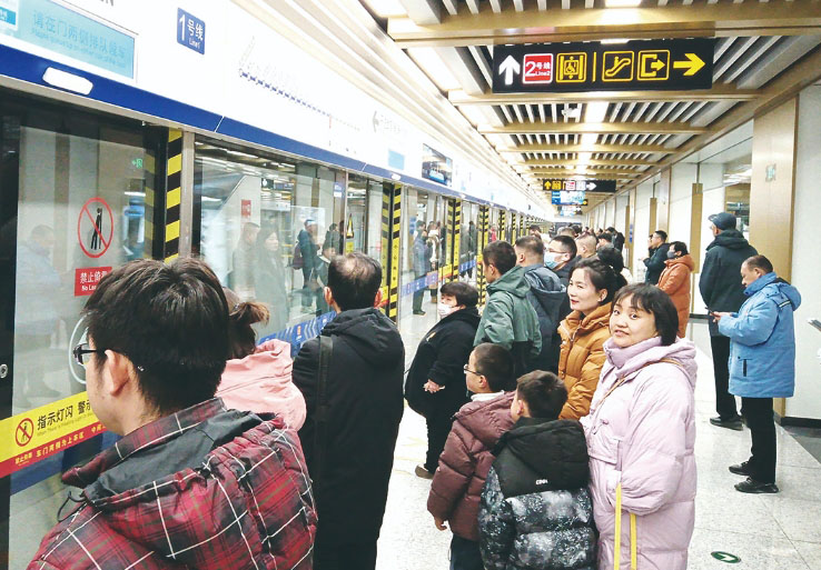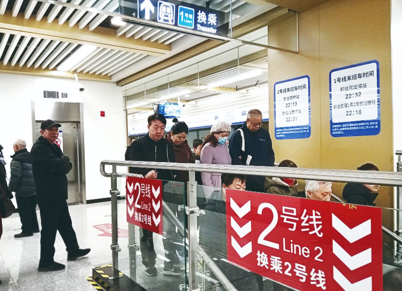 在大南门站,许多市民从1号线下车换乘2号线,专程体验“地铁换乘”。