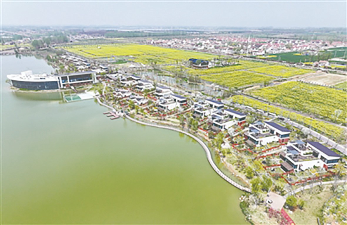 梨树花田、度假酒店、稻田书店……走进宿迁市宿城区蔡集镇牛角社区,往日河道淤塞、村舍简陋的景象不复存在。位于社区中心的牛角淹,如今已成为牛角村欢乐田园度假区。