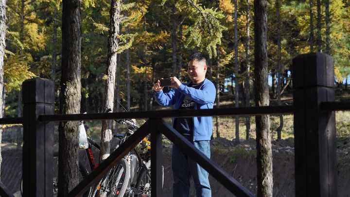 游客在右玉松涛园生态景区拍照。裴元新/摄