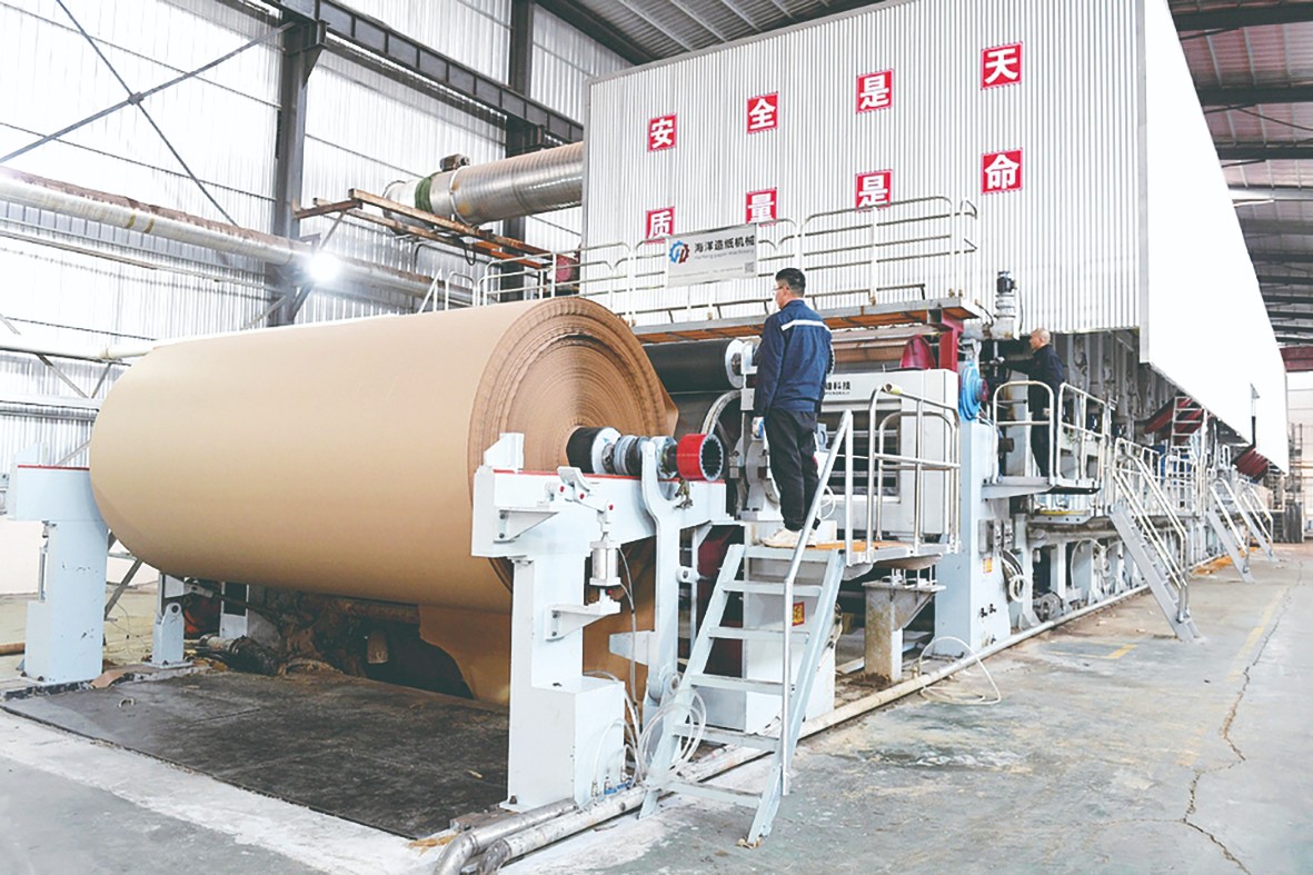 12月25日,运城市稷山县新嘉源纸业有限公司工人正在生产纸箱产品用纸。当地持续强化技术创新与智能化改造,与高校建立产学研合作,依托3家再生纸企业,年处理废旧纸箱30万吨,推动包装印刷产业绿色低碳转型。