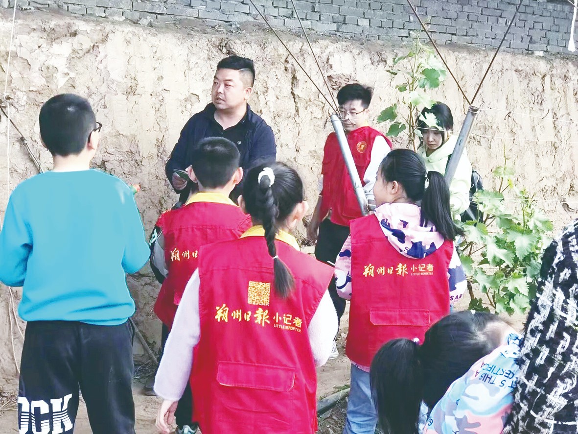 闫升伟(中)向学生讲解蚯蚓分解粪便、改良土壤的科学原理