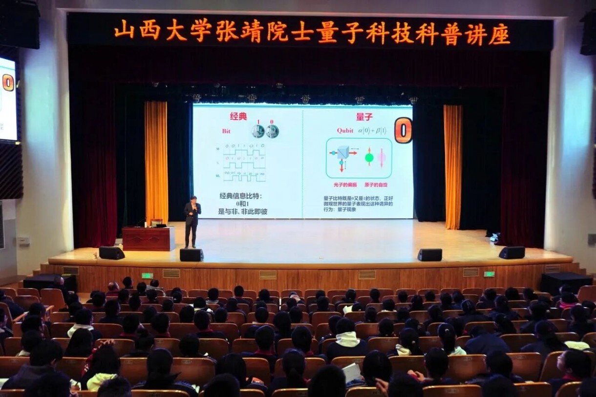 1月8日下午,首场科普讲座在太原市成成中学开讲。张靖院士以“漫谈未来科技—量子科技—超冷原子”为题,围绕“科技自立自强”国家战略需求,从量子概念的缘起与基本原理切入,用通俗化语言解读量子科技在通信、计算、传感等领域的颠覆性变革,系统分析国内外发展现状与前沿趋势。讲座中,他巧妙融合山西大学在量子光学领域的学科优势与科研成果,生动展示了我国在该领域的原创性突破,让在场师生近距离感受前沿科学的魅力与国家科技实力的提升。