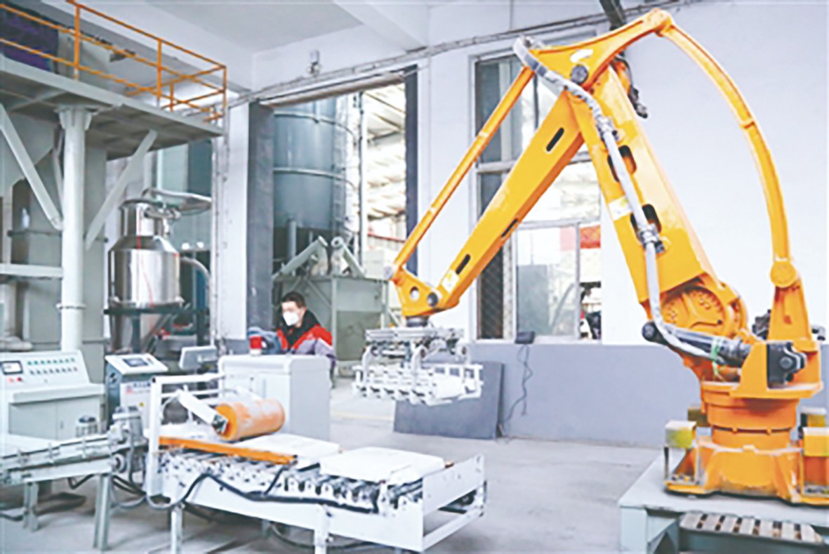 山西华睿达新材料有限公司是一家深耕煤基固废资源化利用与安全型加固材料研发领域的高科技企业。近年来,公司投入近千万元研发经费,攻克多项技术难题,形成了“产品供给+方案设计+现场施工”的全链条服务模式,助力煤炭行业安全、高效、绿色发展。图为1月6日,工人操控机械臂搬运煤矸石充填材料。