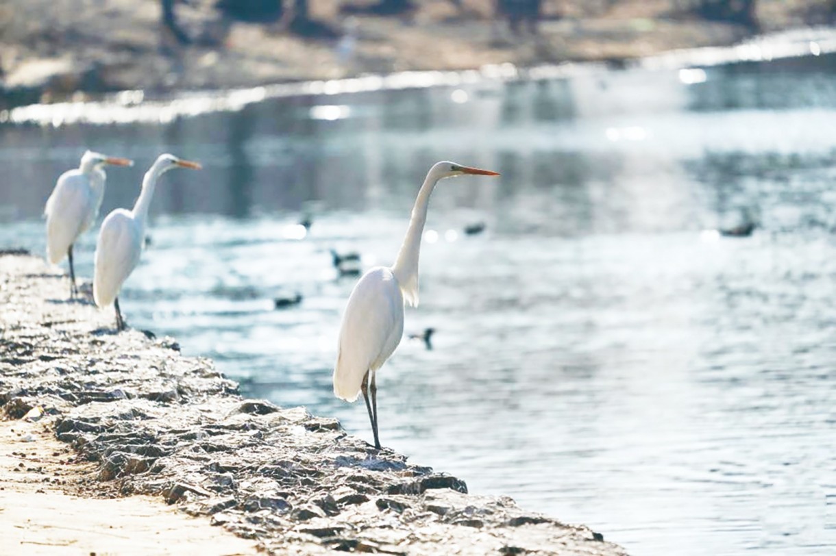 1月22日,白鹭在太原汾河湿地公园栖息。冬日,成群的白鹭在位于山西省太原市的汾河湿地公园内嬉戏、觅食,吸引不少市民驻足观赏。近年来,随着汾河流域生态环境不断改善,越来越多的候鸟选择在这里栖息越冬。