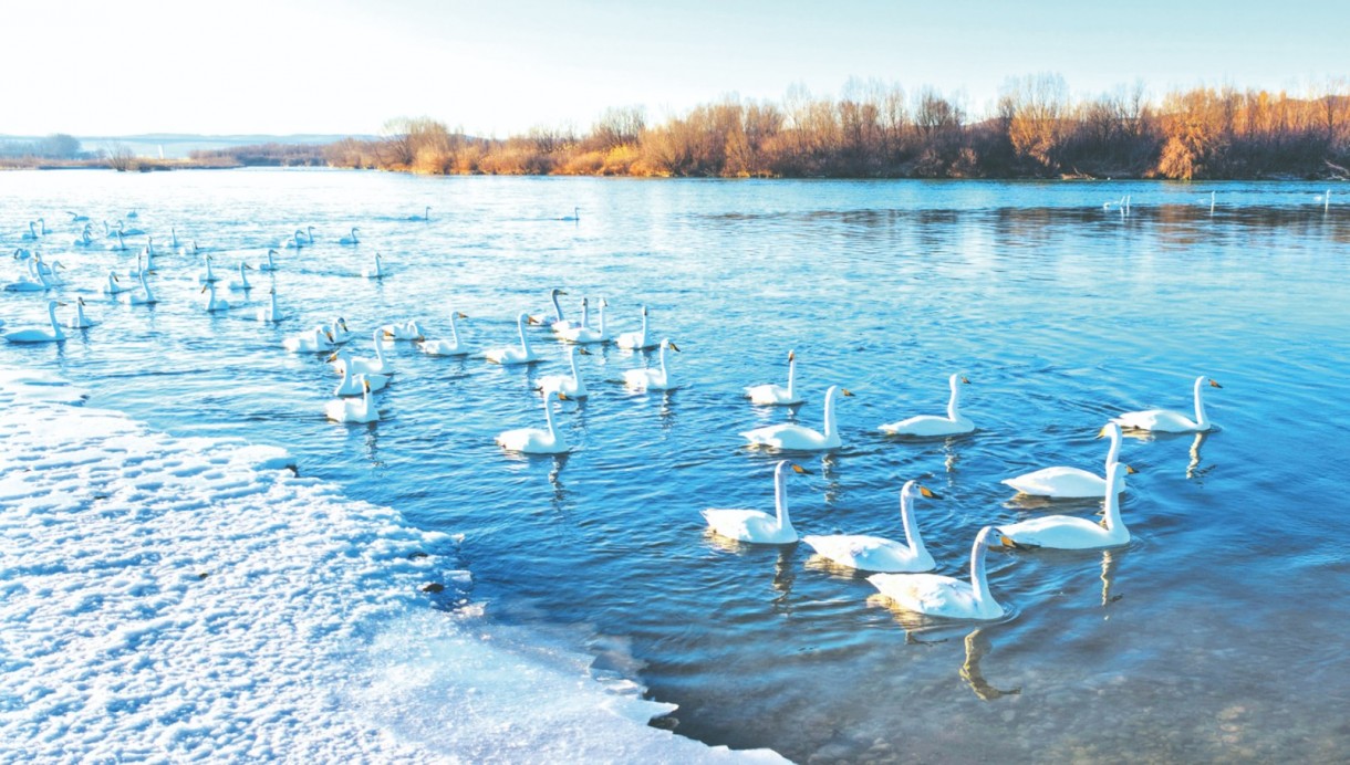 春节期间,黄河河曲段迎来了大规模越冬白天鹅,洁白的天鹅在黄河水域中游弋、嬉戏,勾勒出一幅自然生态和谐的美丽画卷。