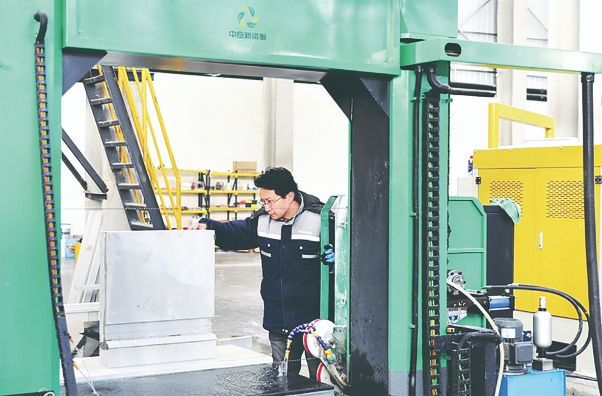 3月2日,山西中岳新资源科技有限公司工作人员正在加工环保建材。该公司联合中国地质科学院、太原理工大学、中北大学材料学院等院校科研力量,针对全省大宗工业废弃物开发成套循环利用技术,预计可回收废弃物5000吨,助力绿色环保发展。
