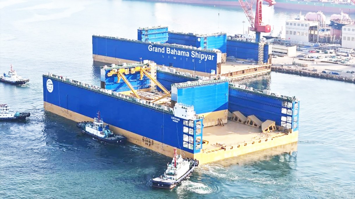 3月8日,由中船北海造船联合中船贸易建造的12万吨举力浮船坞“Lucayan”号首段,从青岛西海岸新区北海造船3号码头离港。