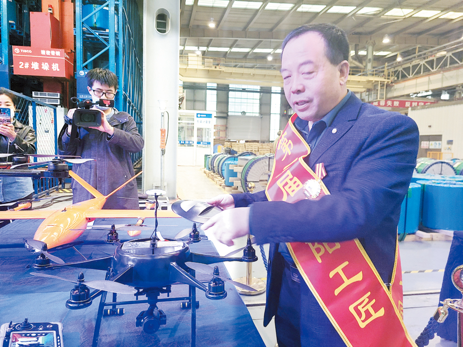 山西元工通用航空技术总监刘智勇介绍其公司新研发推出的碳纤维精细电网巡检无人机