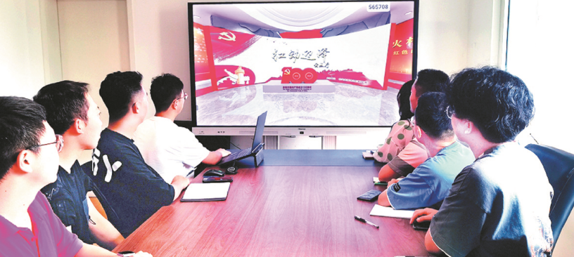 7月6日,市民正通过“红动迎泽”云展厅观看展览。本次展览由中共太原市迎泽区委主办,采用“5G+超高清+VR”技术,云端展出600余件作品,献礼党的百年华诞。