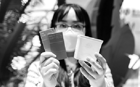工作人员在第五届进博会上展示创新纤维素生物基材“BBC纤维絮纸
