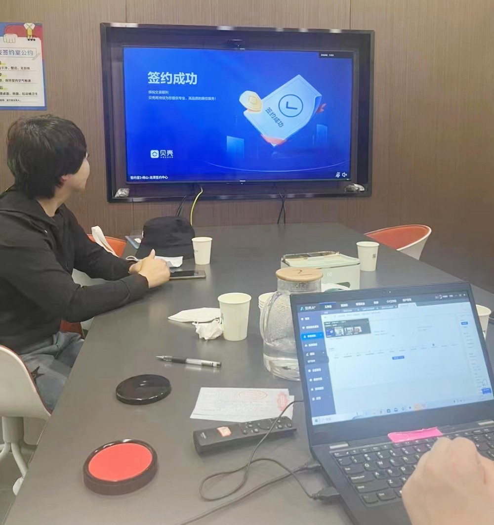 时间差之外的另一个交易难点就是签约,虽然贝壳找房线上签约功能方便业客进行实时沟通,但是业主远在上海线上操作使用不流畅,第一次签约只能暂停。等到业主回到太原,来到贝壳找房太原站交易服务中心,在张浩全程细心服务下才终于和海外的吴先生顺利签约。