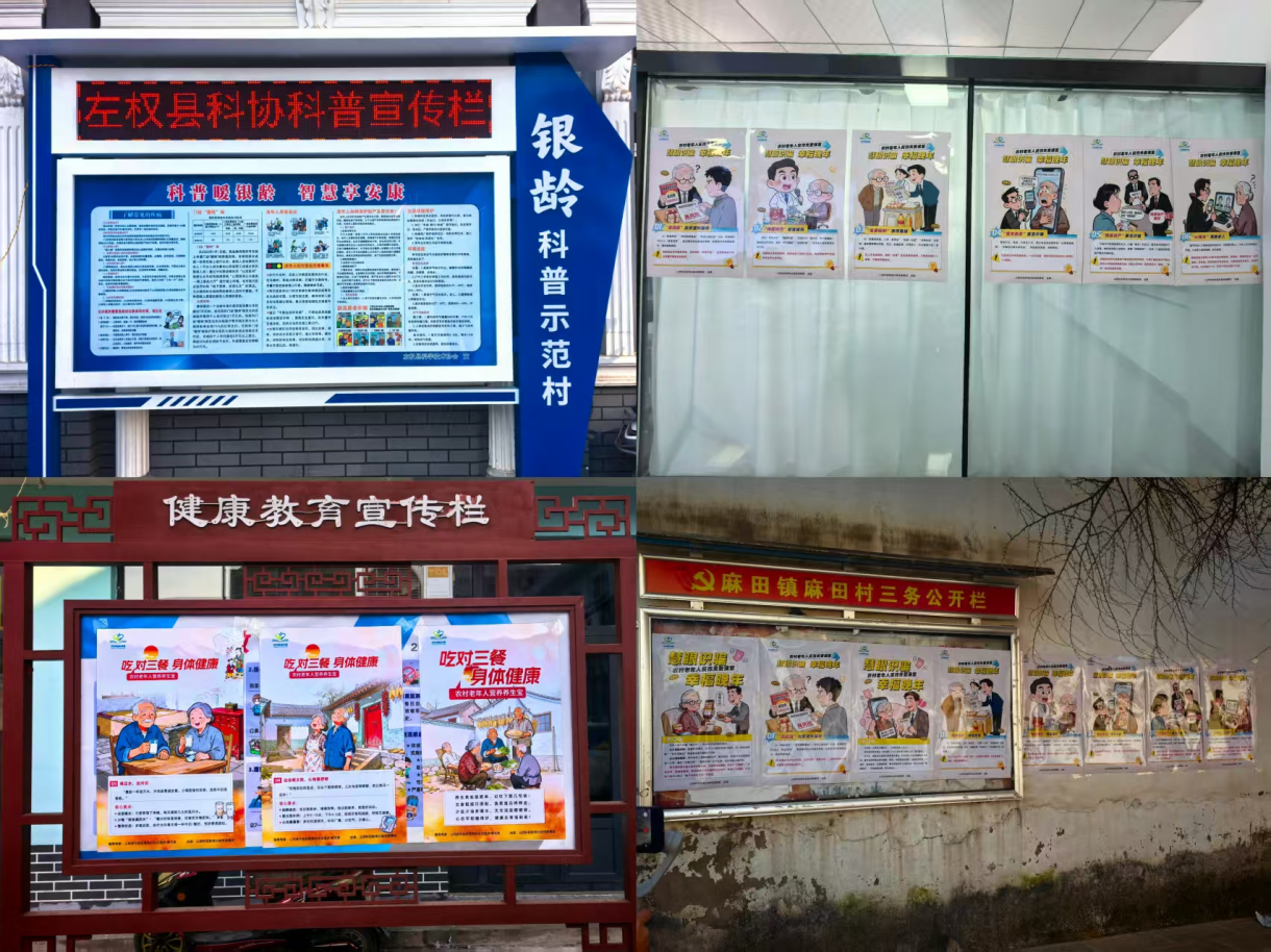 活动现场张贴的老年人健康养生与防诈骗知识宣传挂图